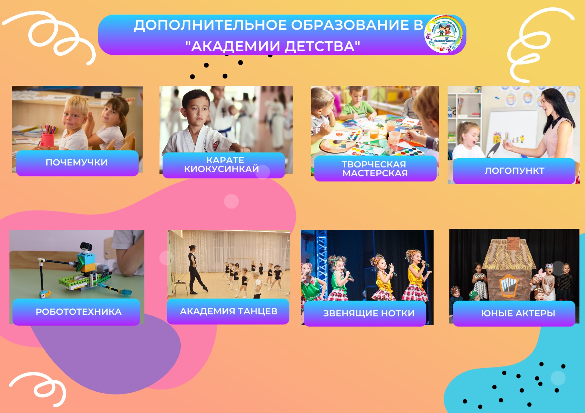 - «Академия-танца» - (развитие творческих способностей детей, формирование эстетических, культурных и нравственных ценностей, посредством обучения народному-сценическому и эстрадному танцу);